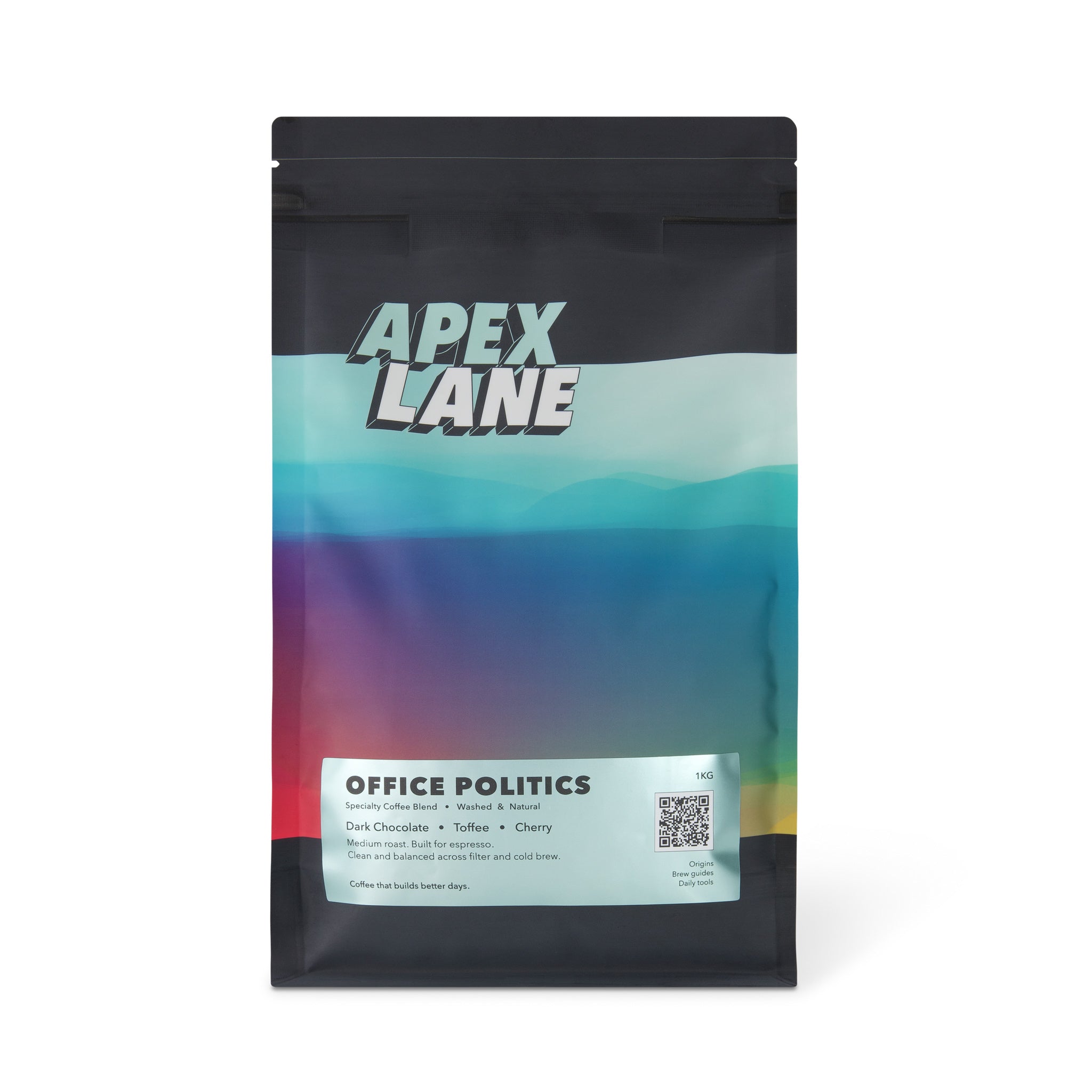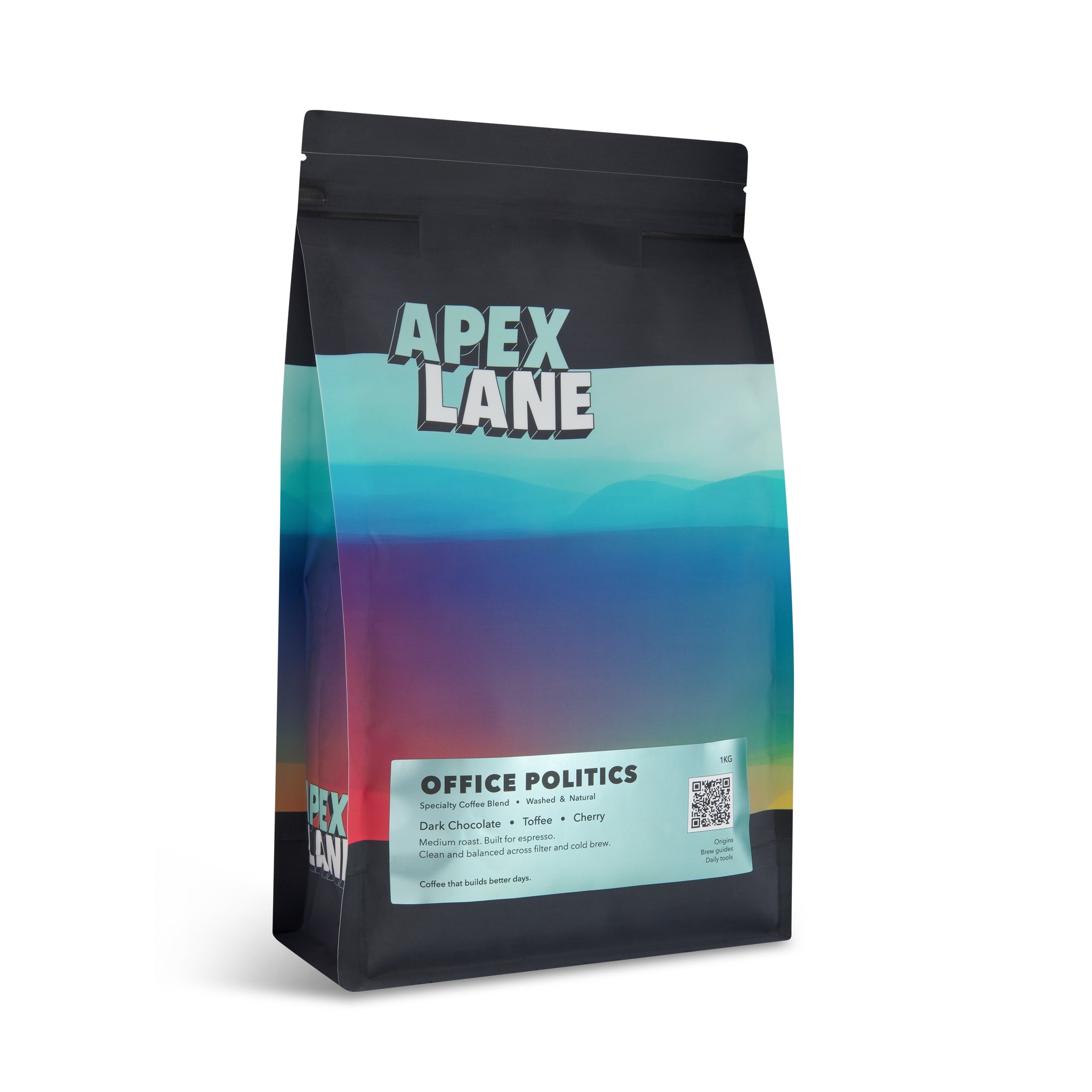 Medium roast blend. Dark chocolate and toffee sweetness with a subtle lift of cherry. Built for espresso, clean and balanced across filter and cold brew. Reliable daily cup—balanced for anyone, expressive for specialty drinkers.